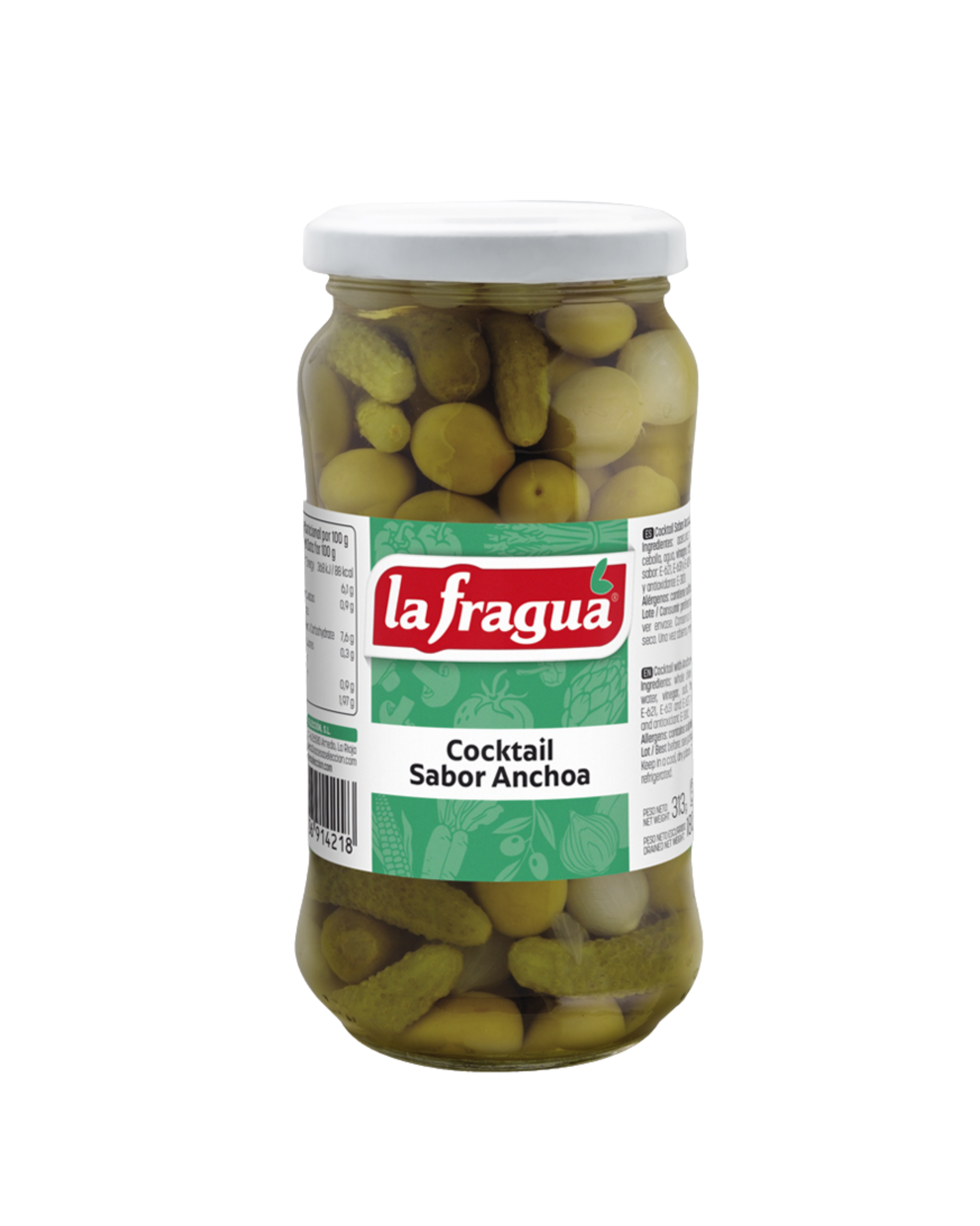 El Cocktail de Aceitunas, Pepinillos y Cebolletas con sabor anchoa es el mejor aliado de los vermuts. Nuestro cocktail solo lleva los mejores encurtidos y el sabor a anchoa le da el toque especial. También, disfruta de tus picoteos, vermuts y aperitivos con nuestro rico Cocktail de Aceitunas y Pepinillos.