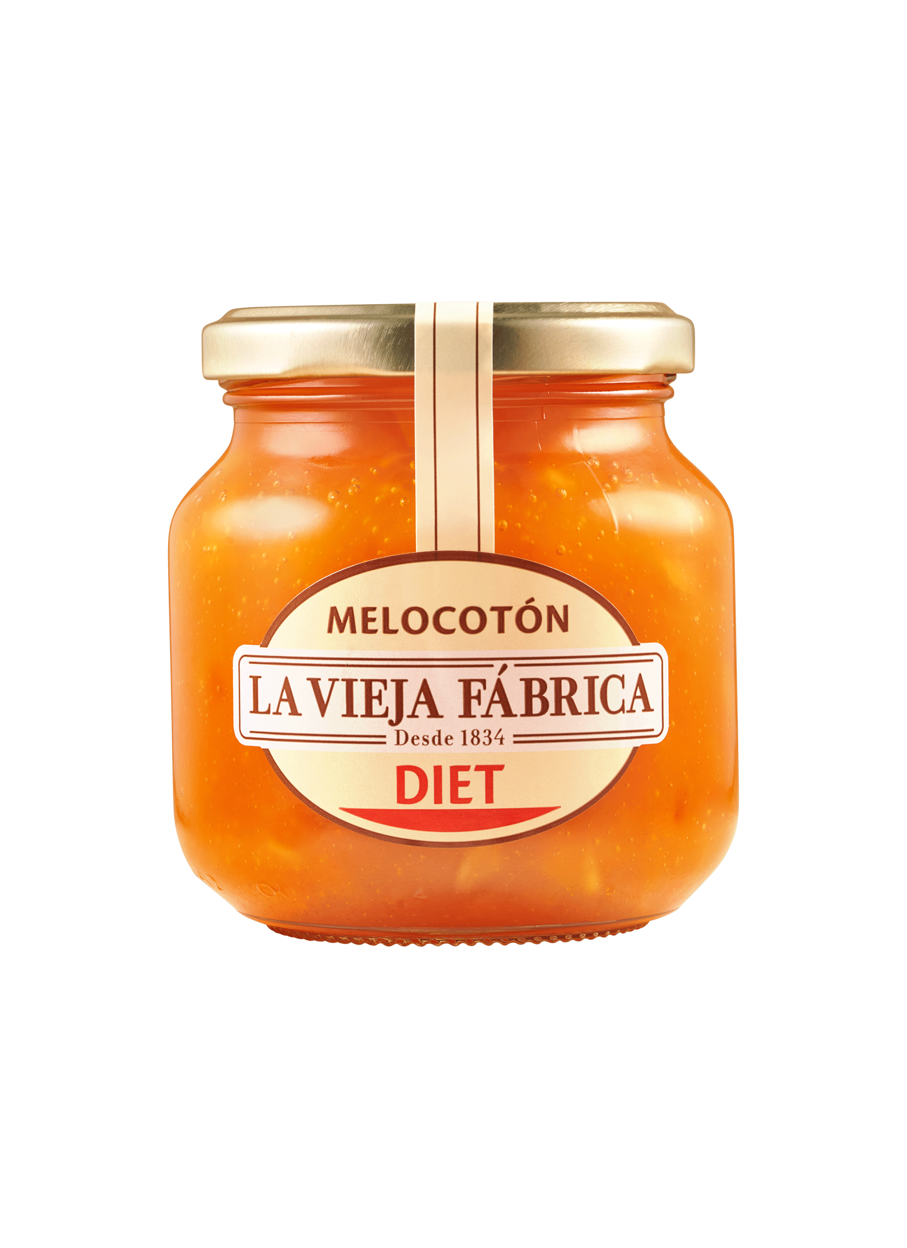 Mermelada de melocotón 280g Diet con el sabor y las propiedades de la mermelada de siempre pero endulzadas exclusivamente con fructosa.